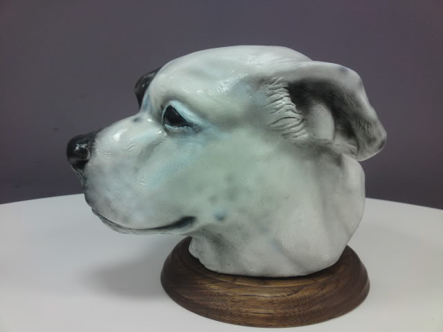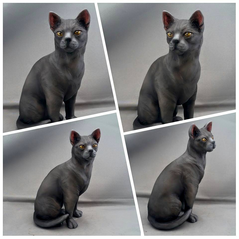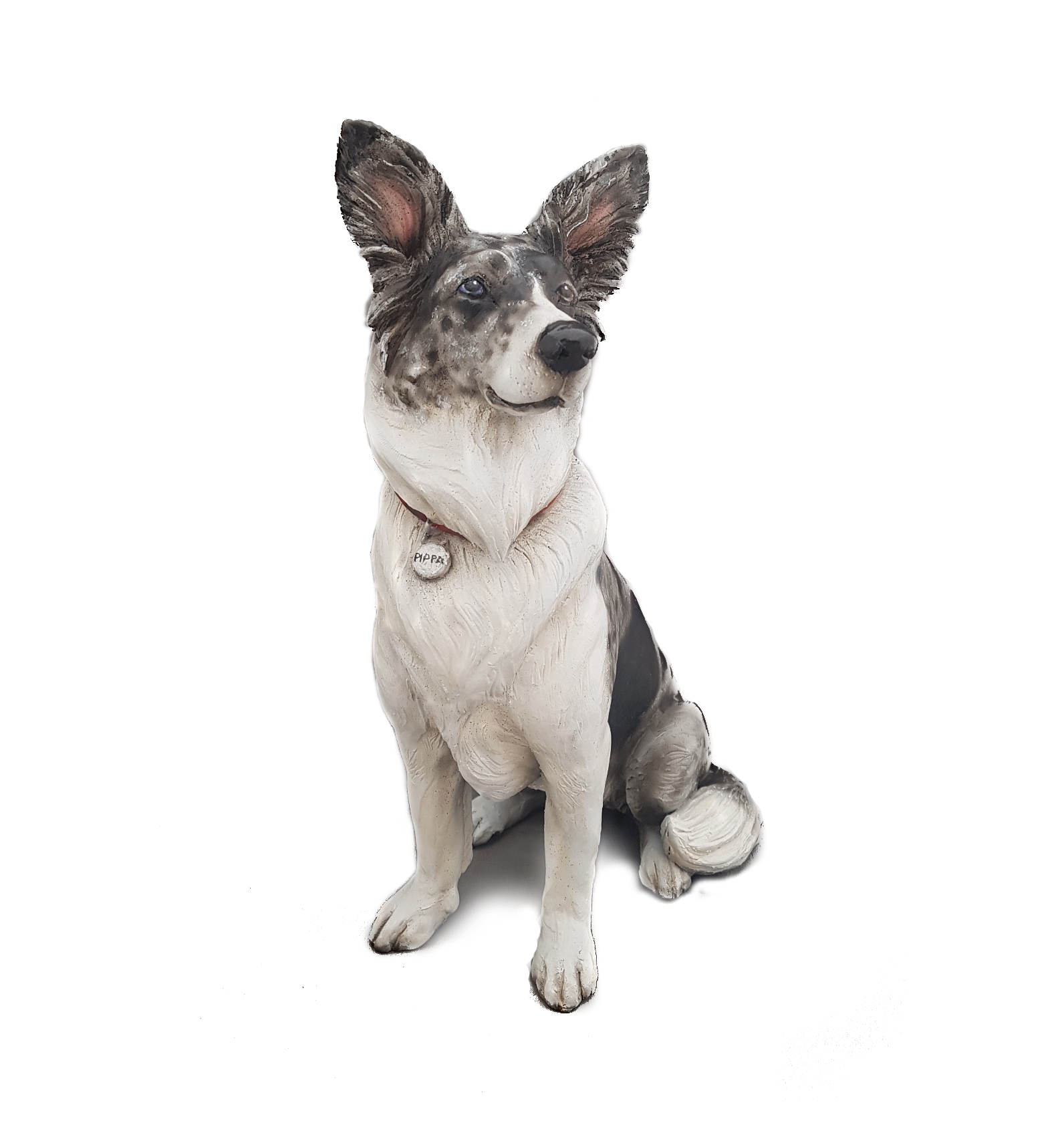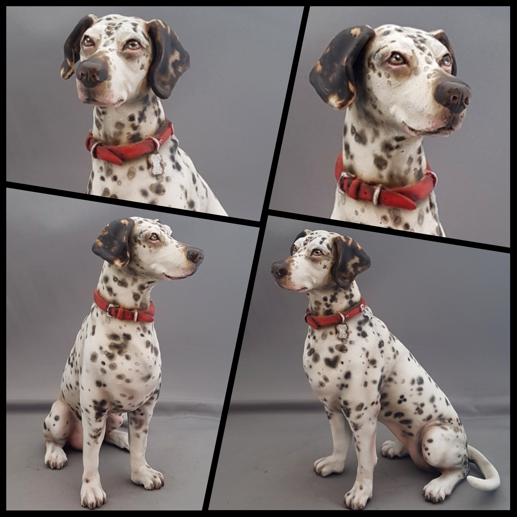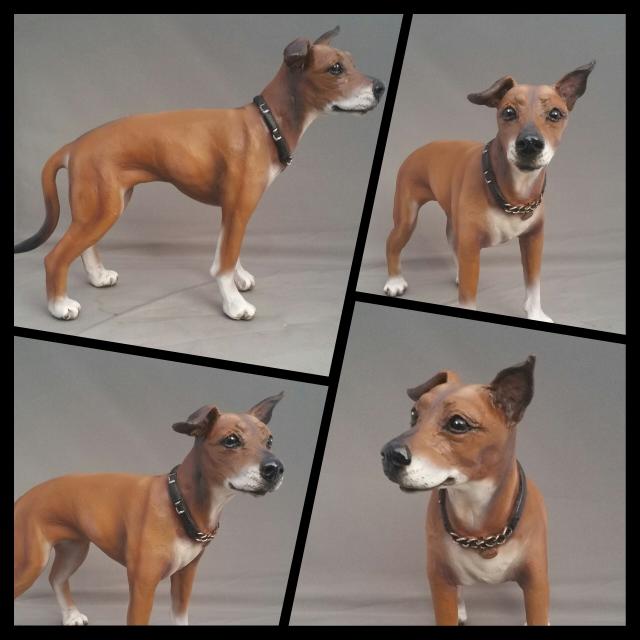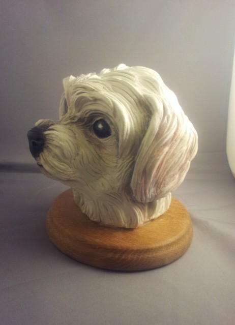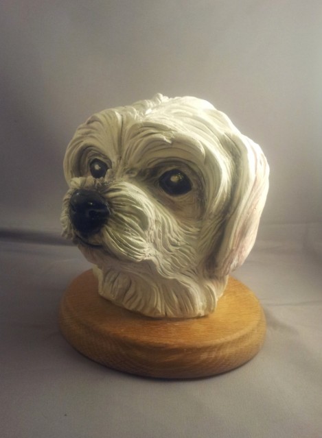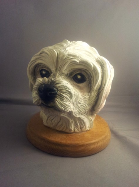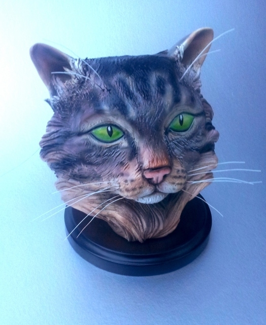 I work from photos of your pet to produce a figurine or bust in clay which can be either airbrushed to match your pets colouring and markings or I can finish the sculpture in a metallic bronze effect. Figurines are various sizes and busts are generally life size but can be done in any size you'd want. I also send you progress pics to make sure the sculpture is exactly how you want to produce a one of a kind bespoke piece.