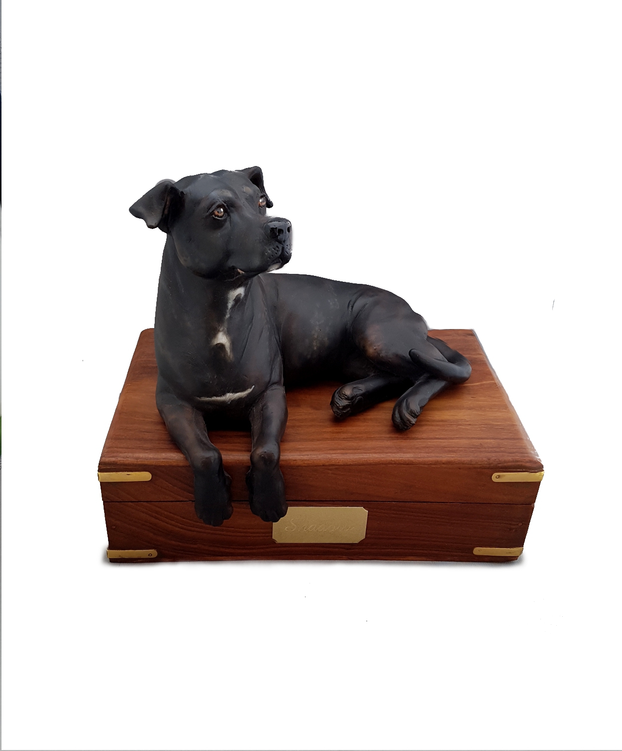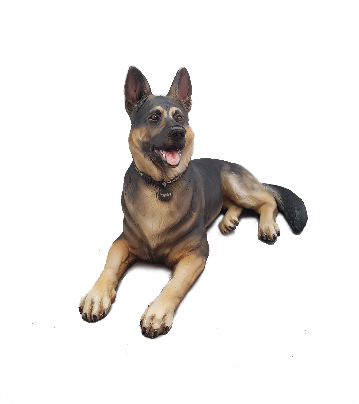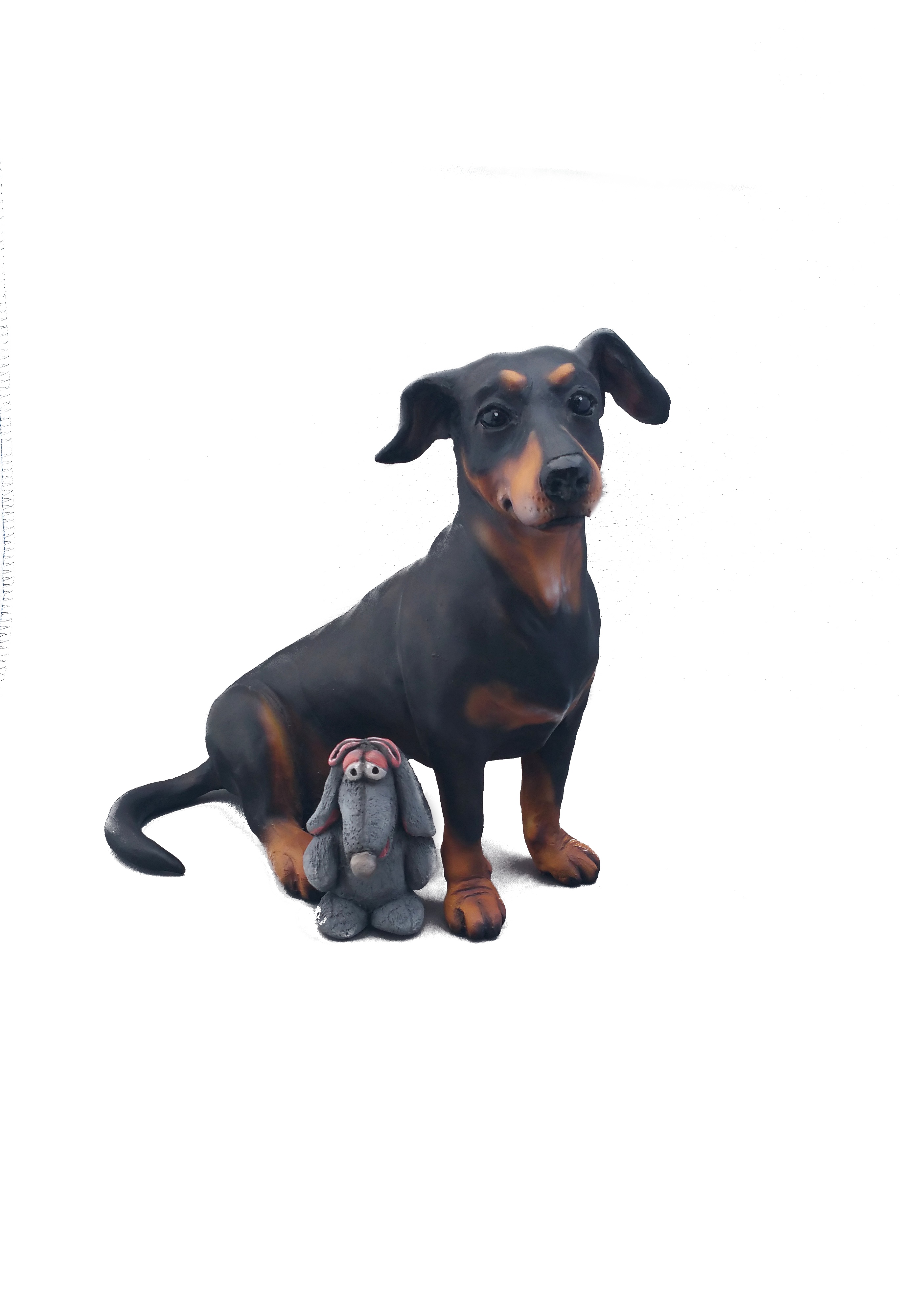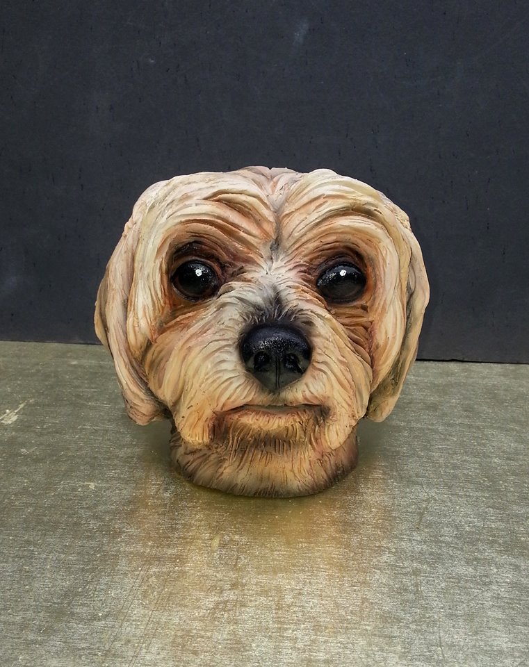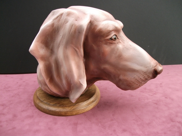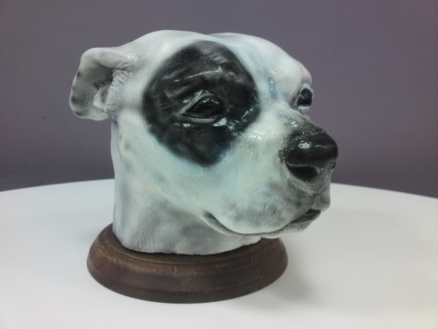 I work from photos of your pet to produce a figurine or bust in clay which can be either airbrushed to match your pets colouring and markings or I can finish the sculpture in a metallic bronze effect. Figurines are various sizes and busts are generally life size but can be done in any size you'd want. I also send you progress pics to make sure the sculpture is exactly how you want to produce a one of a kind bespoke piece.